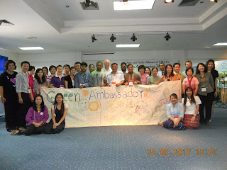 The Green Ambassadors Training, held during 21-25 May 2012, in Chiangmai Thailand organized by the APAY Green Team was a grand success. Fifteen participants representing National Movements of Australia, Bangladesh, Cambodia, Hong Kong, India, Macau, Philippines, Singapore, Sri Lanka & Thailand attended the Training Workshop.